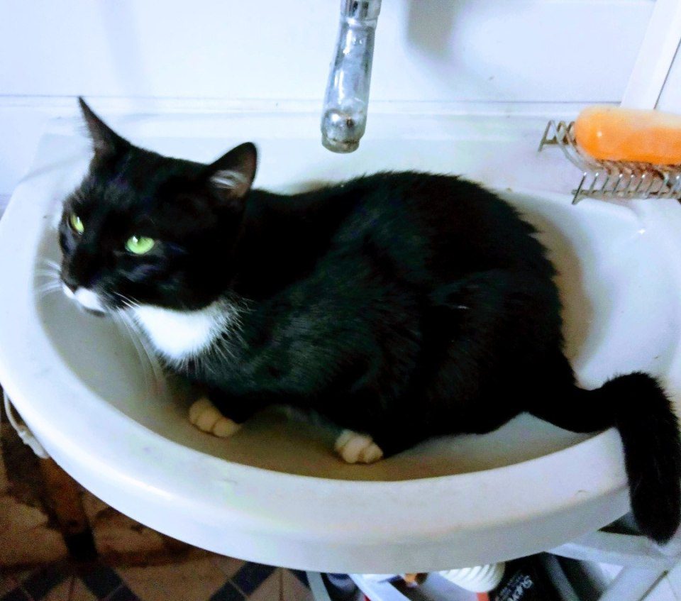 kot w łazience siedzi w umywalce