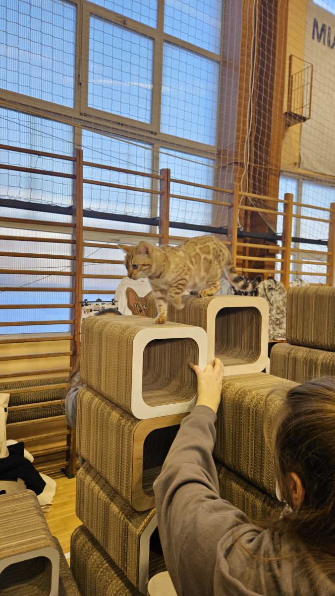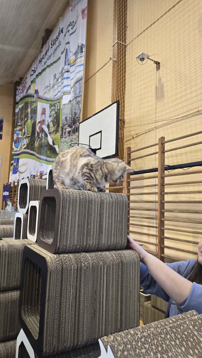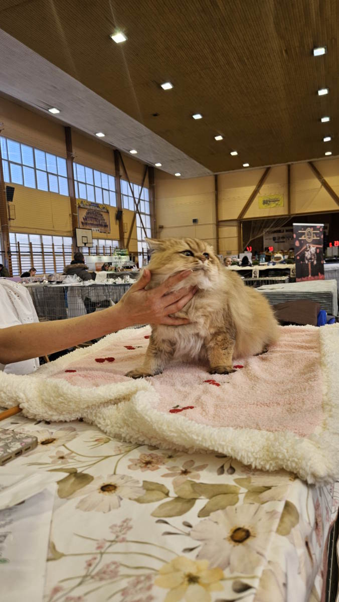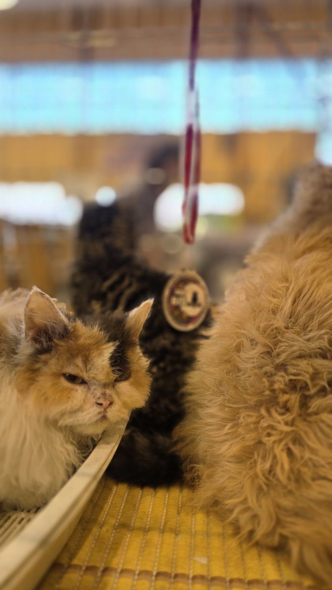 Pierwszego dnia wydarzenia mieliśmy okazję odwiedzić wystawę osobiście. Stanowiska hodowców przyciągały uwagę starannie przygotowanymi klatkami, w których koty odpoczywały między ocenami. Charakterystycznym elementem takich wystaw jest dbałość o detale – dekoracje, miękkie posłania i spokojna atmosfera mają zapewnić zwierzętom komfort podczas całego dnia, a piękne dekoracje stanowią wyróżnik każdej hodowli.